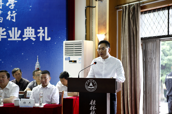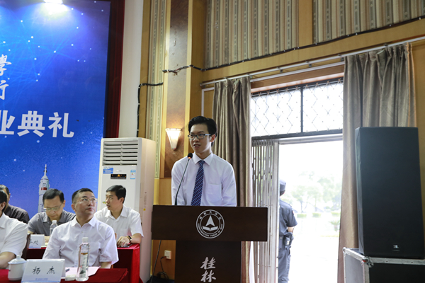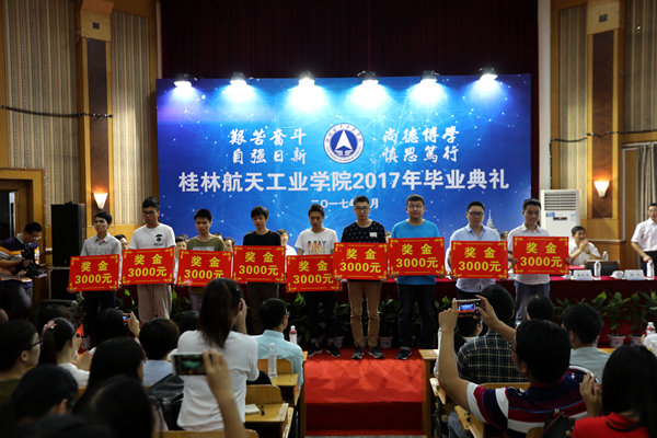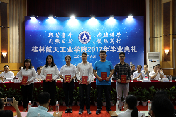 毕业典礼上,党委副书记罗延忠代表学校宣读了《桂林航天工业学院关于表彰2017年考取硕士研究生的毕业生的决定》、《关于授予罗文君等学生“优秀毕业生”称号的决定》、《关于颁发2017届毕业奖学金的决定》。校领导为以上奖项获得者颁奖。