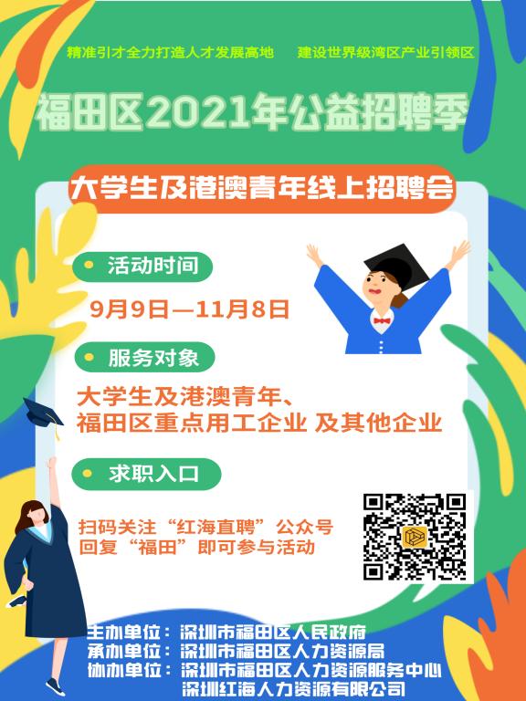 受疫情影响,企业“招工难”求职者“就业难”的现实问题突出,为做好疫情防控常态化下的招聘活动,福田区人力局依托网络平台开展线上招聘专项活动,进一步满足福田区重点用工企业和其他企业招聘需求,稳定就业岗位,助力福田经济发展,促进大学生及港澳青年更快更好实现就业。此次“云”招聘活动将有120+企业推出2200+岗位等待你前往“赴约”